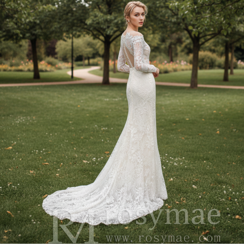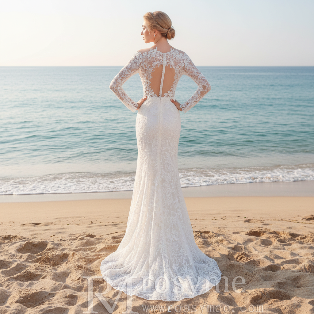 Princess Long Sleeve Mermaid Wedding Dress with Long Train