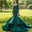 V-neck Halter Green Satin Mermaid Wedding Dress Formal Gown
