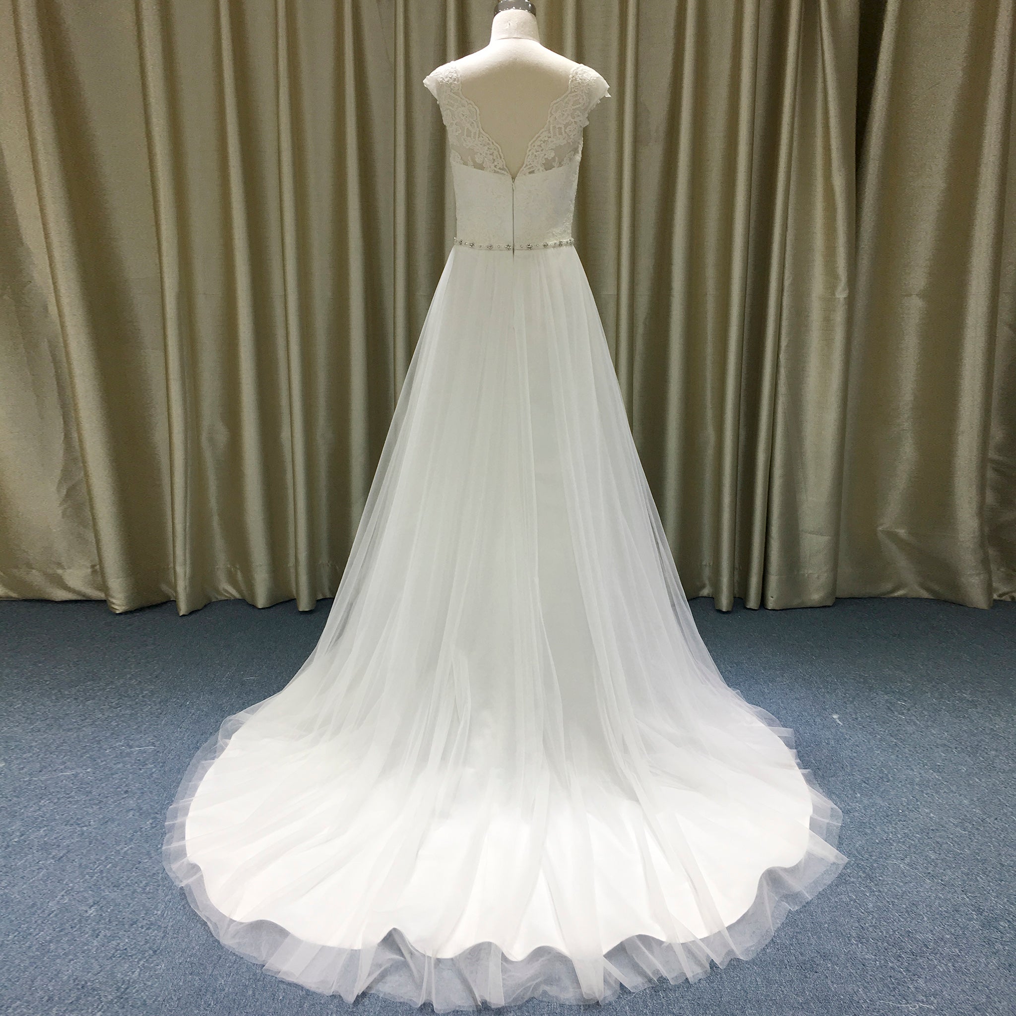 Vintage A-lkine Wedding Dress with Lace Bodice and Tulle Skirt for Brides