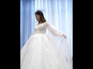 Cape Long Sleeve Ball Gown Wedding Gown Sparkly Wedding Dress