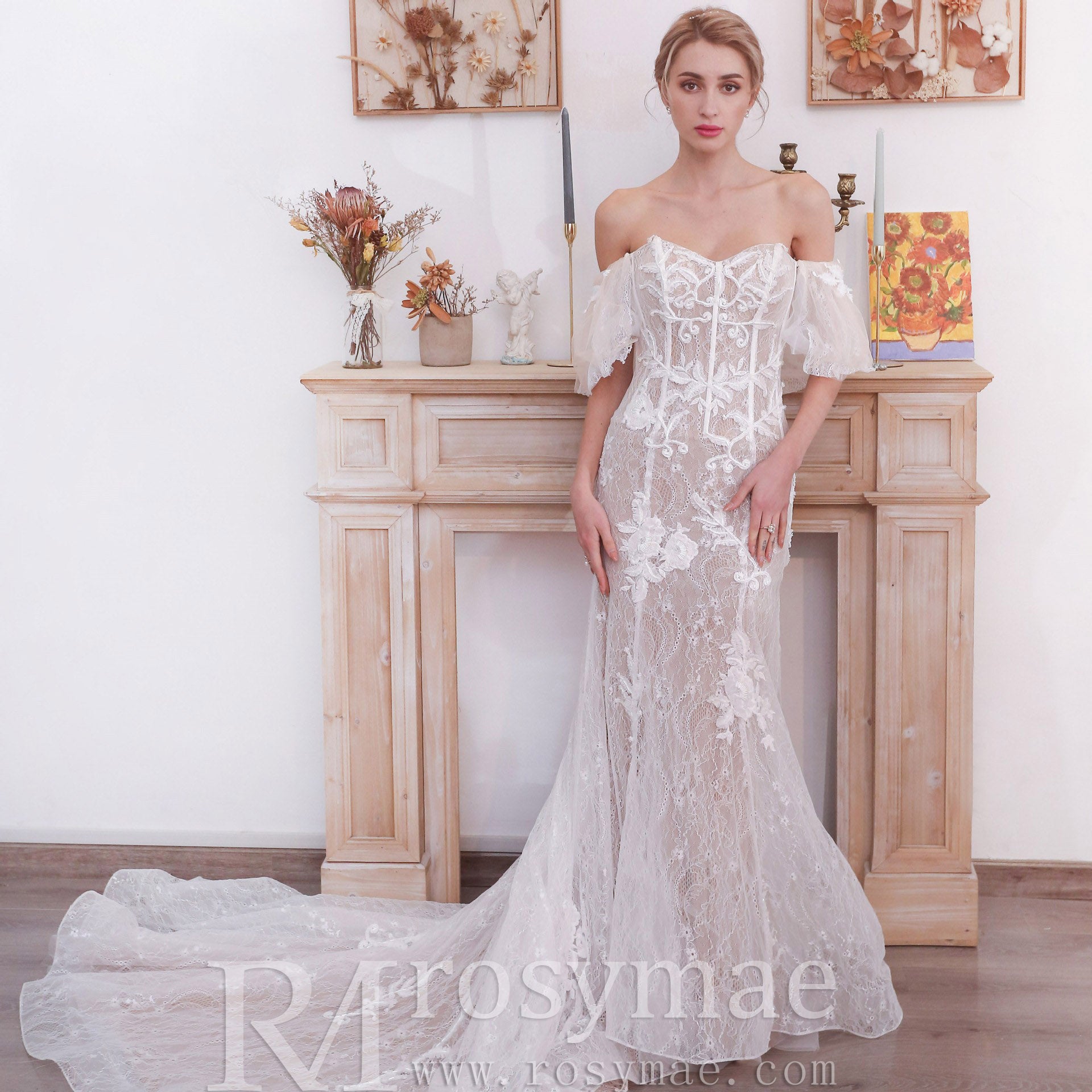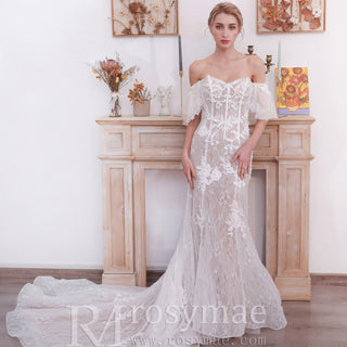 Off the Shoulder Sleeve Lace Mermaid Wedding Dress