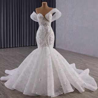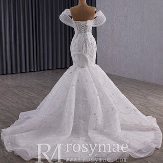 Classic Lace Mermaid Wedding Dress with Off the Shoulder for Elegant Brides