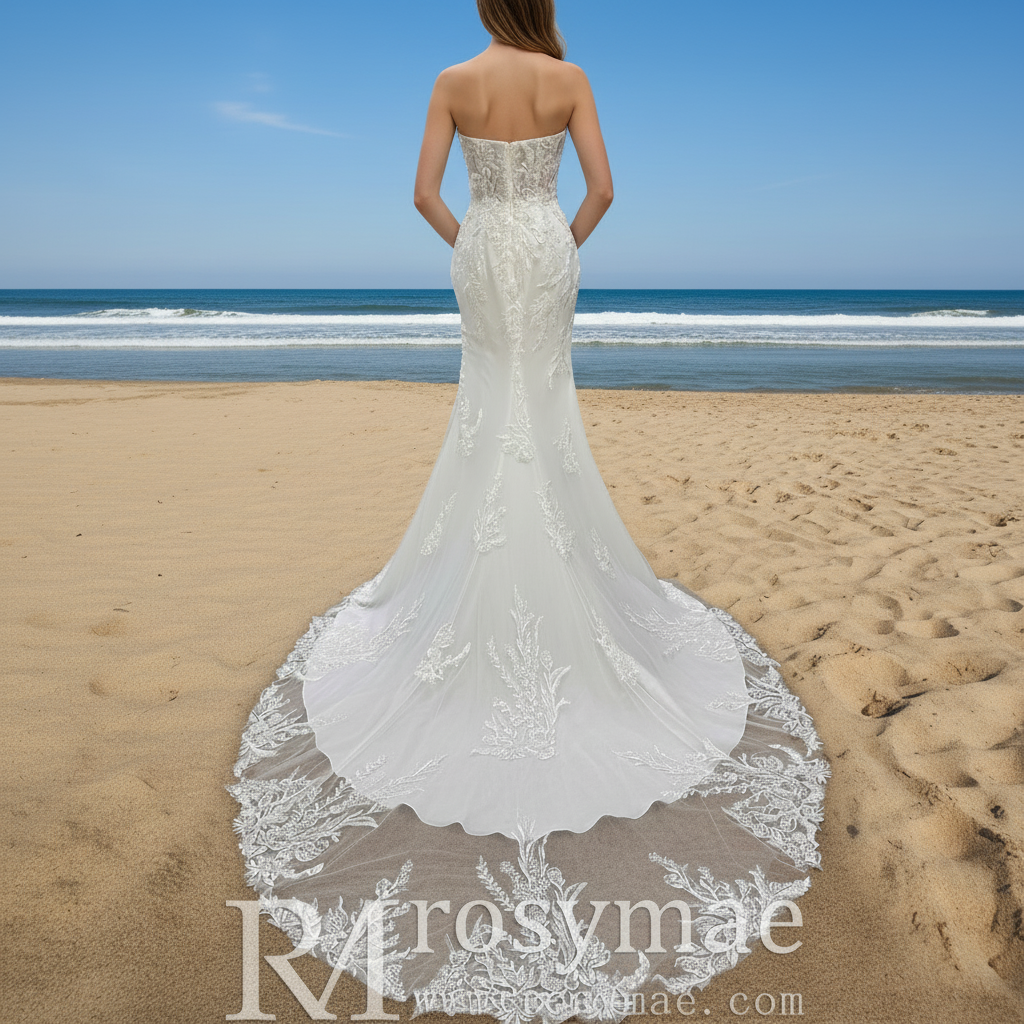 Expertly crafted by industry professionals, the Romantic and Floral Mermaid Wedding Dress with Slit elevates bridal style by perfectly balancing elegance with captivating attractive. This strapless gown, featuring a deep sweetheart neckline, beautifully accentuates the décolletage, imbuing your look with timeless romance and sophisticated charm. Made from delicate shimmer tulle, the dress is lavishly detailed with intricate three-dimensional floral appliqués that give texture and a soft feminine grace, ensuring you’ll captivate onlookers from every angle. The bold thigh-high leg slit adds an exciting, tasteful edge while allowing graceful movement, making every step as confident as it is stunning. Complementing the design, sheer cutouts along the waistline introduce a contemporary and flattering element, sculpting your natural curves with refined elegance. The mermaid silhouette hugs your figure flawlessly, highlighting your shape with a seamless blend of sensuality and poise. Perfect for brides seeking to express both romance and bold sophistication, this dress promises to make your wedding day unforgettable as you radiate confidence, beauty, and timeless glamour.