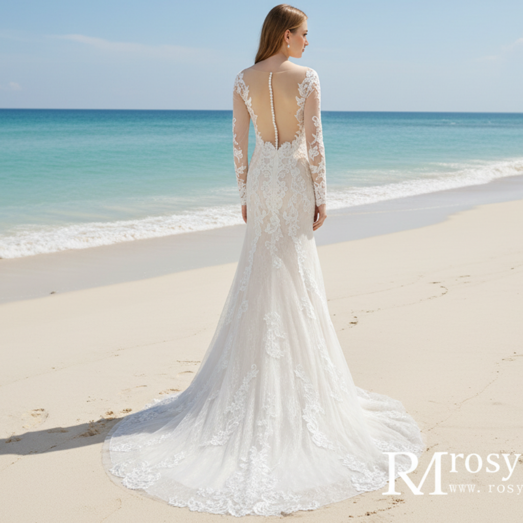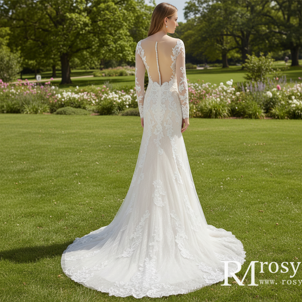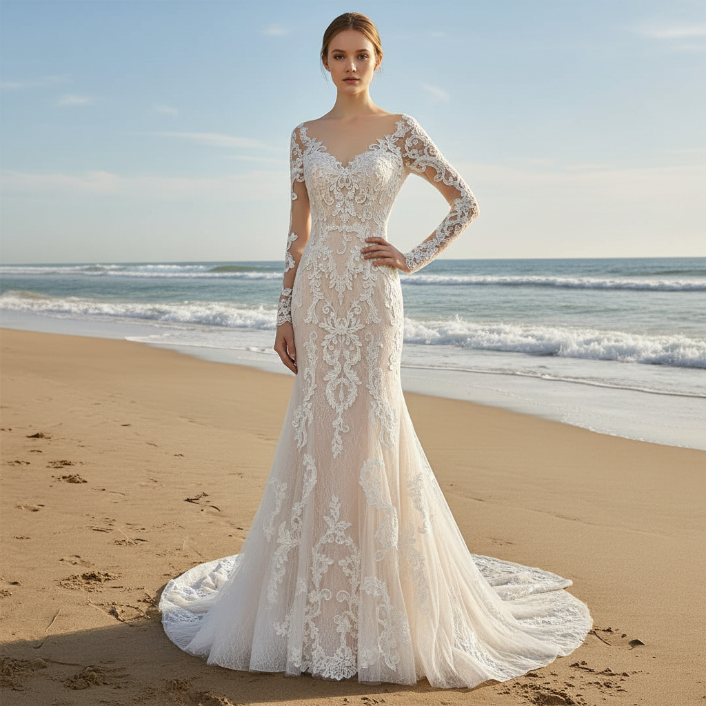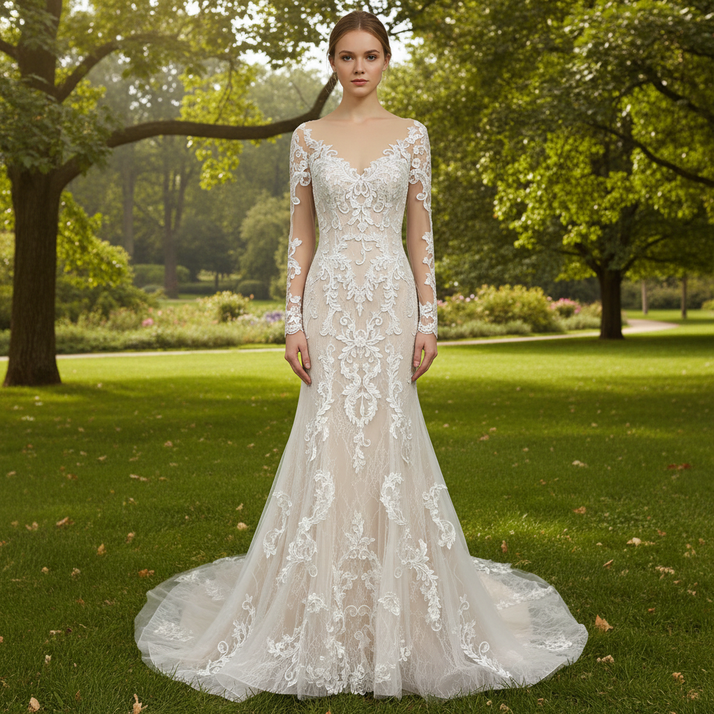 Long Sleeve Mermaid Lace Wedding Dress With Chapel Train