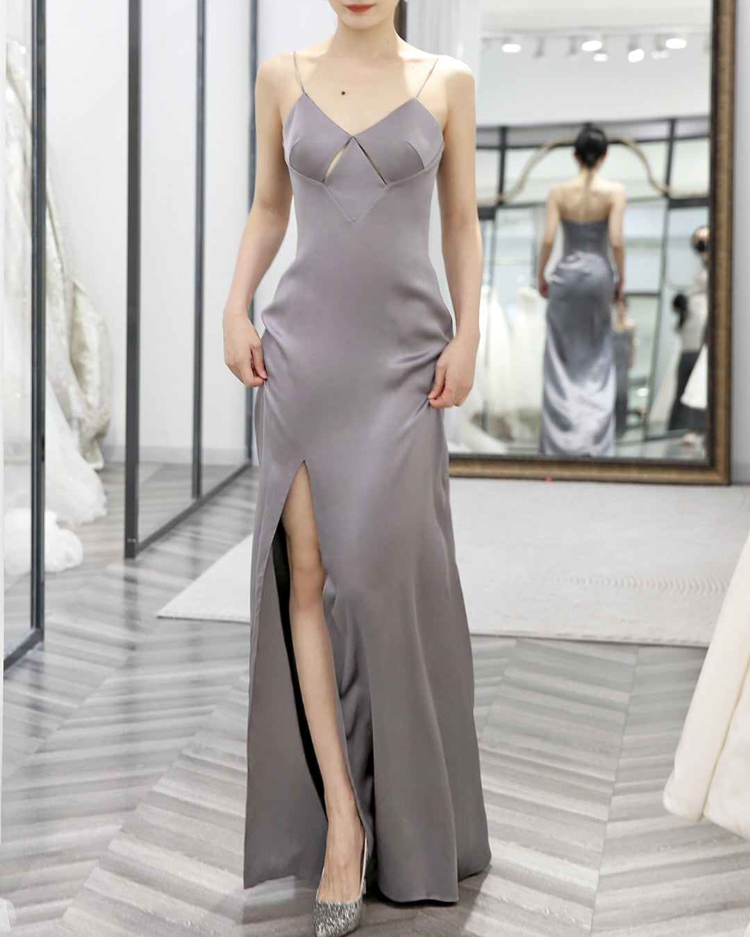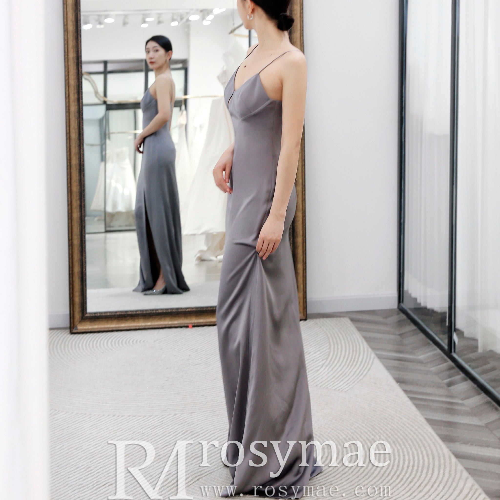 ¿Buscas un vestido de dama de honor impresionante? ¡No busque más! Este vestido de dama de honor con tirantes finos y cuello en V presenta un ajuste favorecedor y una silueta acampanada que acentúa tus curvas. Con una cola romántica y una espalda escotada sexy, este vestido es perfecto para cualquier boda. ¡Siéntete segura y hermosa en el gran día!
