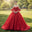 Vintage Luxury Red Wedding Dress Sparkly Lantern Long Sleeve Ball Gown