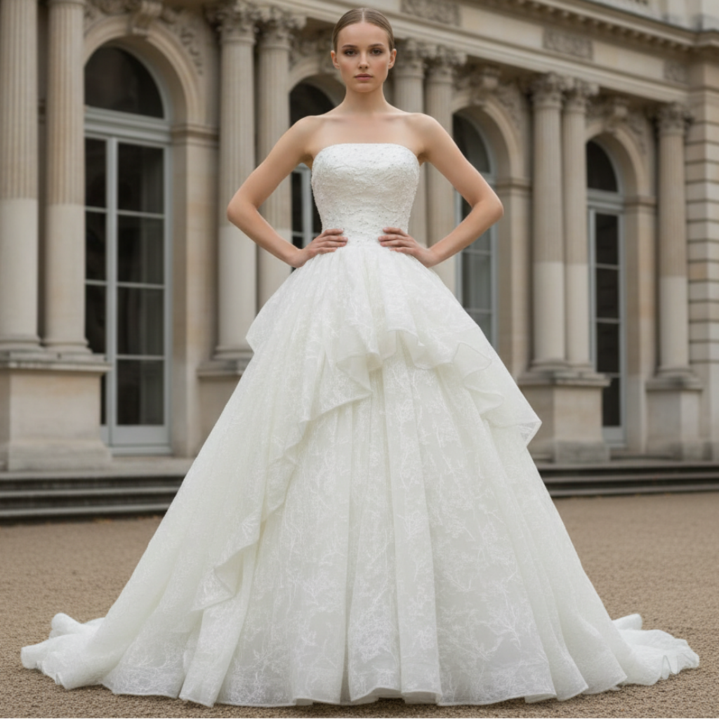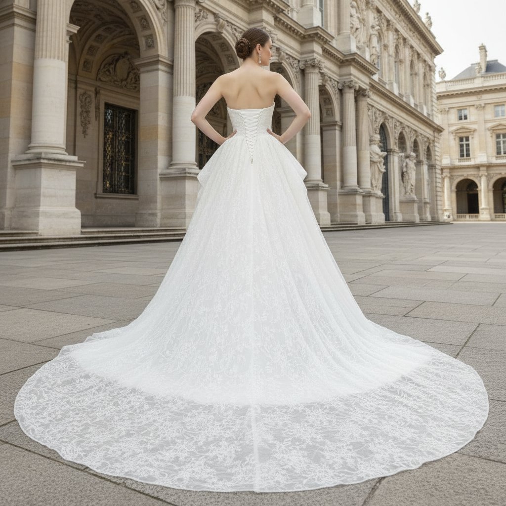 Vestido de novia de encaje con volantes sin tirantes Corsé Vestidos de novia