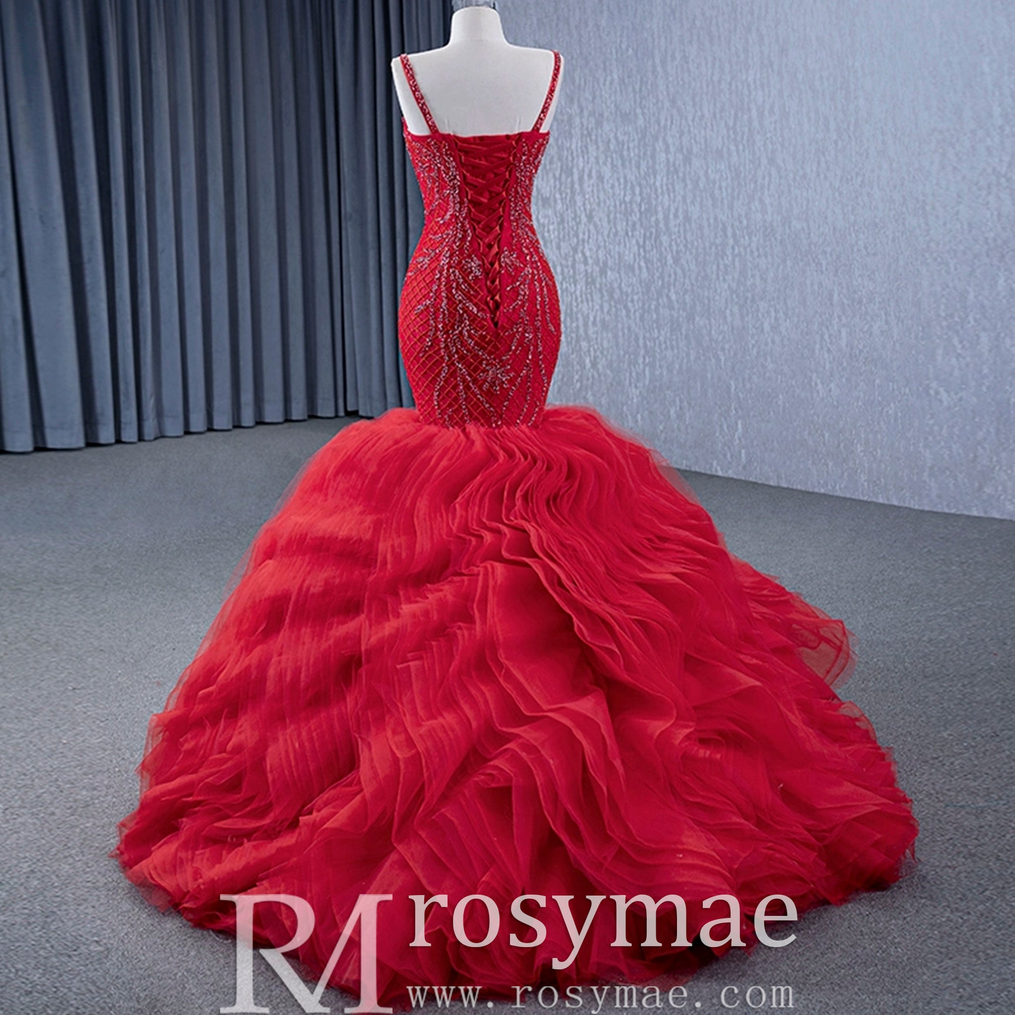 Este impresionante vestido de noche de corte sirena luce un diseño de alta gama con intrincadas lentejuelas bordadas a mano. La encantadora organza le aporta un toque de elegancia, mientras que los tirantes finos y los volantes crean una silueta única y favorecedora. Perfecto para eventos formales o fiestas de noche, este vestido sin duda causará sensación.