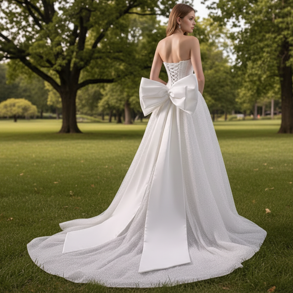 Vestido de novia brillante de corte A de lujo con lazo desmontable