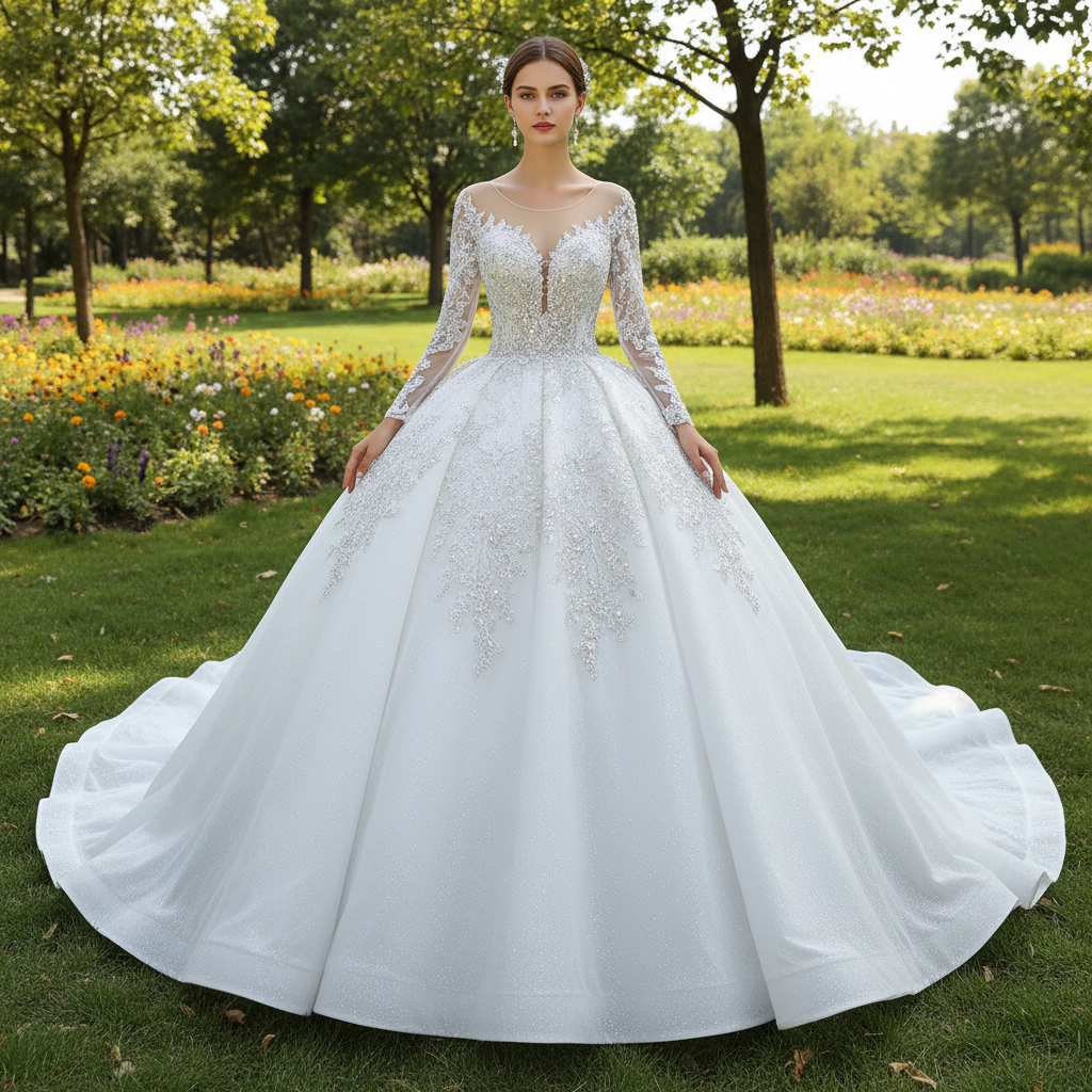 ¡Experimente lo último en lujo con este impresionante y lujoso vestido de novia hinchado de lentejuelas con cuentas de Dubai y manga larga! Este elegante vestido de gala presenta intrincados pedrería y deslumbrantes lentejuelas, creando un verdadero look de alta costura. Las mangas largas y la espalda tipo corsé añaden un toque de modestia, mientras que el exquisito diseño irradia elegancia real. Perfecto para bodas, desfiles y cualquier ocasión especial. Siéntete como una princesa con este vestido único.
