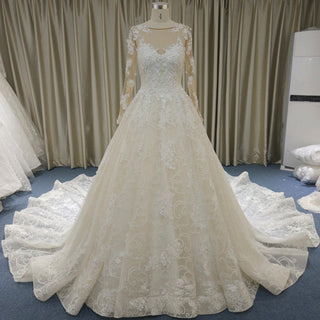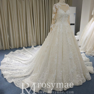 Fully Beaded Scoop Ball Gown Wedding Dress Long Sleeve Bridal Gown