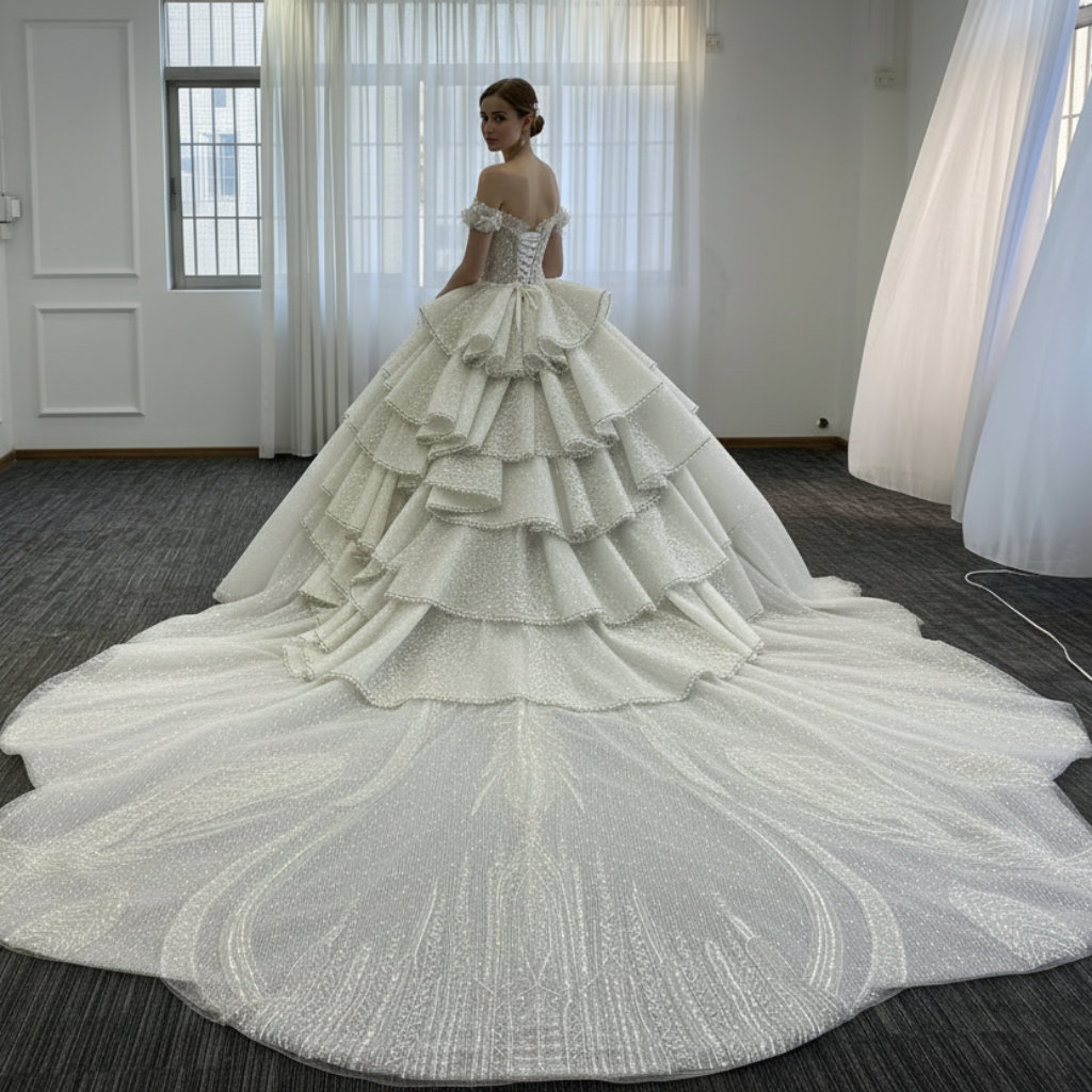 Cada vestido se confecciona a medida. Antes del envío, le enviaremos fotos y un video del vestido terminado para su aprobación final. Esto garantiza que cada detalle esté impecable antes de que comience su viaje.