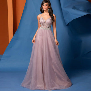 Transforma tu noche de graduación en un momento mágico con este encantador vestido largo de corte A con escote en V y brillo, que irradia sofisticación y glamour. Sus delicados tirantes finos enmarcan tus hombros con elegancia, manteniendo una estética refinada que favorece a cualquier figura. Adornado con un acabado brillante, este vestido captará todas las luces de la pista de baile, asegurándote un brillo radiante desde cualquier ángulo. Su silueta clásica de corte A realza tu figura, cayendo con gracia desde el busto hasta el suelo, creando una silueta universalmente favorecedora que te hará sentir segura y elegante. Confeccionado con materiales de primera calidad, este vestido combina un diseño impecable con una comodidad excepcional, para que puedas bailar, celebrar y disfrutar de tu noche especial sin complejos. Ya sea que estés desfilando por la alfombra roja, posando para fotos o bailando hasta el amanecer, este vestido ofrece el equilibrio perfecto entre glamour y gracia. Su escote discreto y sus refinados detalles lo hacen apropiado para cualquier evento formal, mientras que el brillo deslumbrante te asegura ser el centro de atención. Invierte en un vestido que te haga sentir como la mejor versión de ti misma: deslumbrante, segura y absolutamente inolvidable.