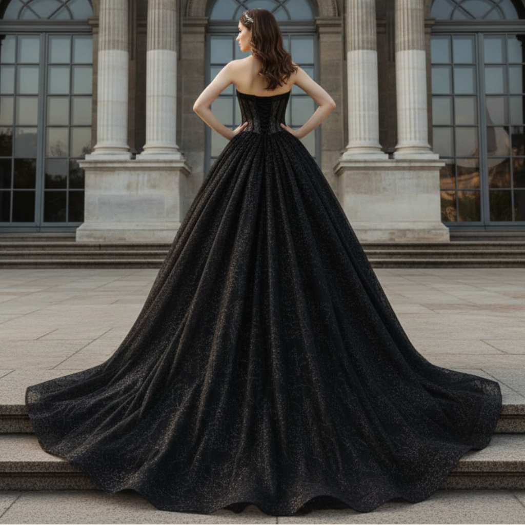 Vestido de novia sin tirantes Elegante vestido de novia negro