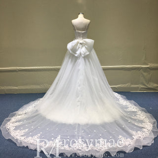 Classic & Elegant White Floral Lace Bride Dress Strapless Wedding Dresses