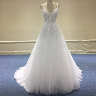 Experimente la elegancia y la sofisticación con estos encaje un _ Línea de vestidos de novia . Confeccionados con apliques de encaje de alta calidad, estos vestidos están diseñados para ajustarse de manera cómoda y hermosa, lo que los convierte en la elección perfecta para cualquier novia.