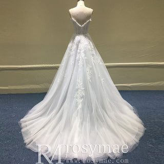 Trendy Sparkly Sheer Bodice A-line Wedding Dress with 3D Flowers