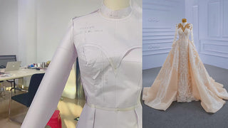 Cada vestido se confecciona a medida. Antes del envío, le enviaremos fotos y un video del vestido terminado para su aprobación final. Esto garantiza que cada detalle esté impecable antes de que comience su viaje.