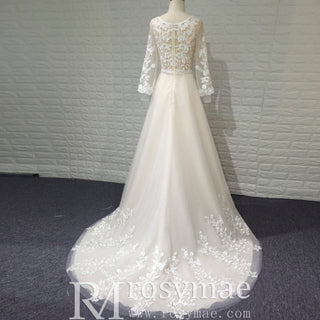 Hermosos vestidos de novia con mangas transparentes y corte A para una novia elegante