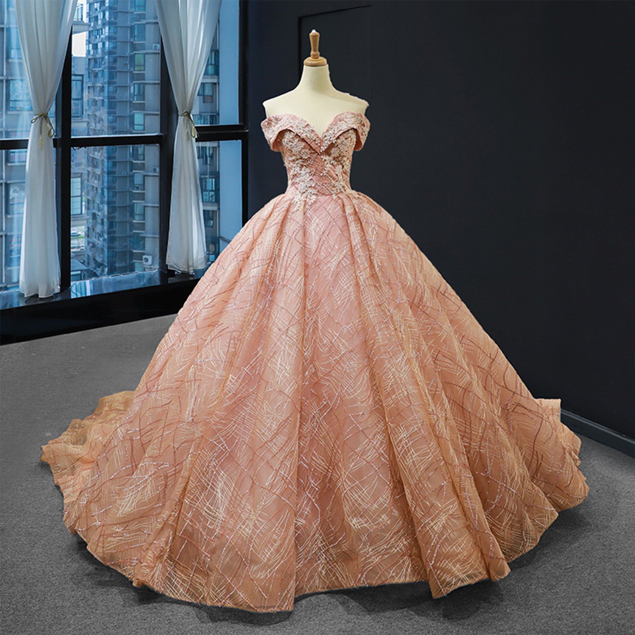 Destaca con nuestro vestido de fiesta de escote corazón y hombros descubiertos, diseñado para que brilles con la elegancia de una princesa. El elegante escote corazón y la favorecedora silueta de hombros descubiertos crean un look atemporal y moderno, mientras que los deslumbrantes detalles brillantes capturan la luz con cada movimiento. Perfecto para quinceañeras, graduaciones o cualquier celebración especial, este vestido te garantiza seguridad, belleza y lista para ser el centro de atención toda la noche.