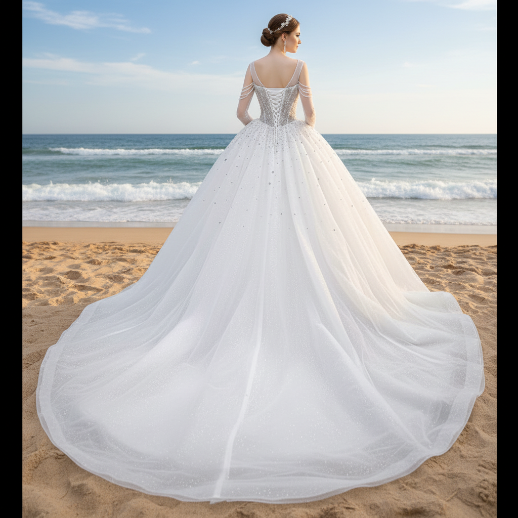 Cada vestido se confecciona a medida. Antes del envío, le enviaremos fotos y un video del vestido terminado para su aprobación final. Esto garantiza que cada detalle esté impecable antes de que comience su viaje.