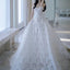 Vestido de novia con escote redondo y mangas largas y lleno de cuentas