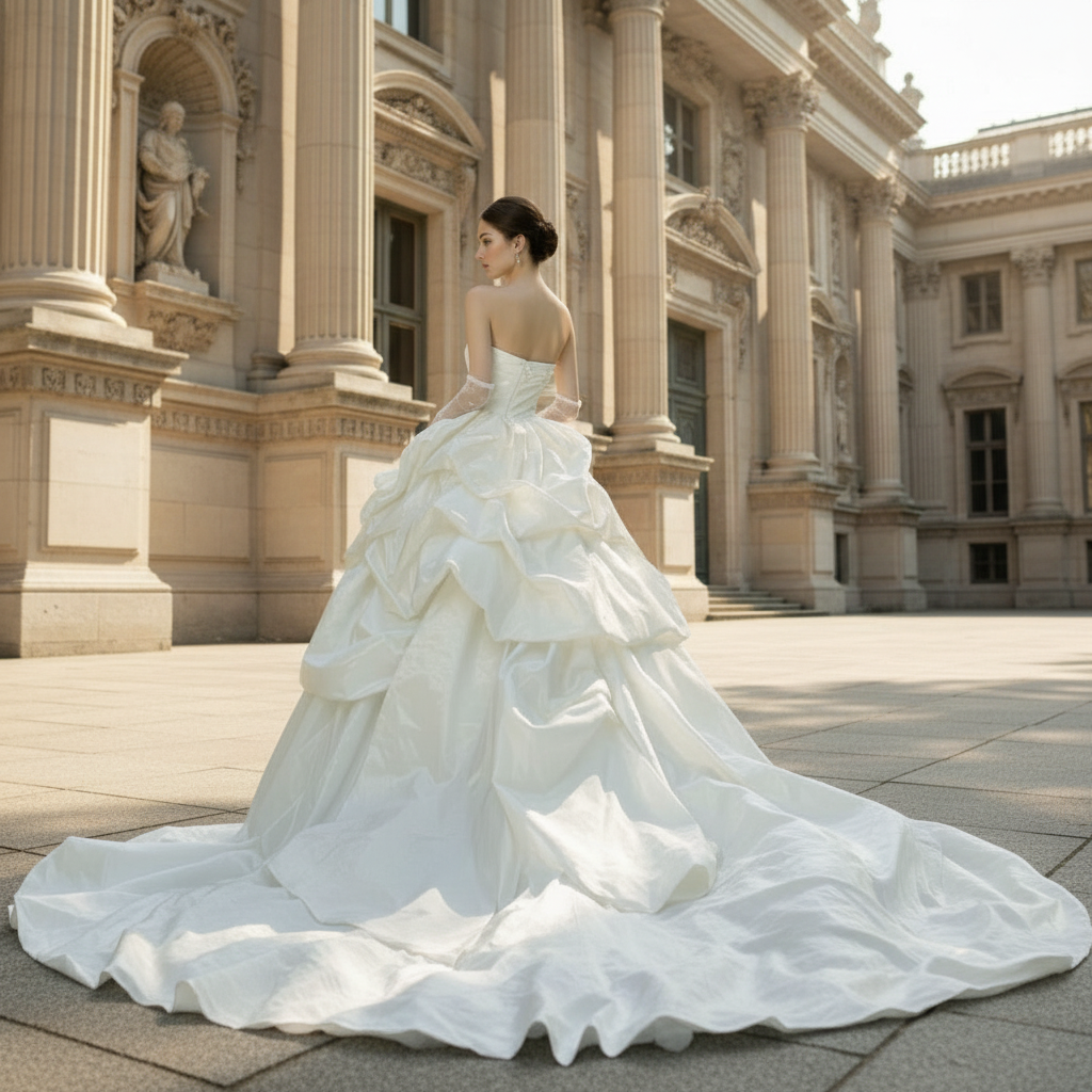 Cada vestido se confecciona a medida. Antes del envío, le enviaremos fotos y un video del vestido terminado para su aprobación final. Esto garantiza que cada detalle esté impecable antes de que comience su viaje.