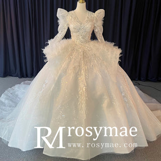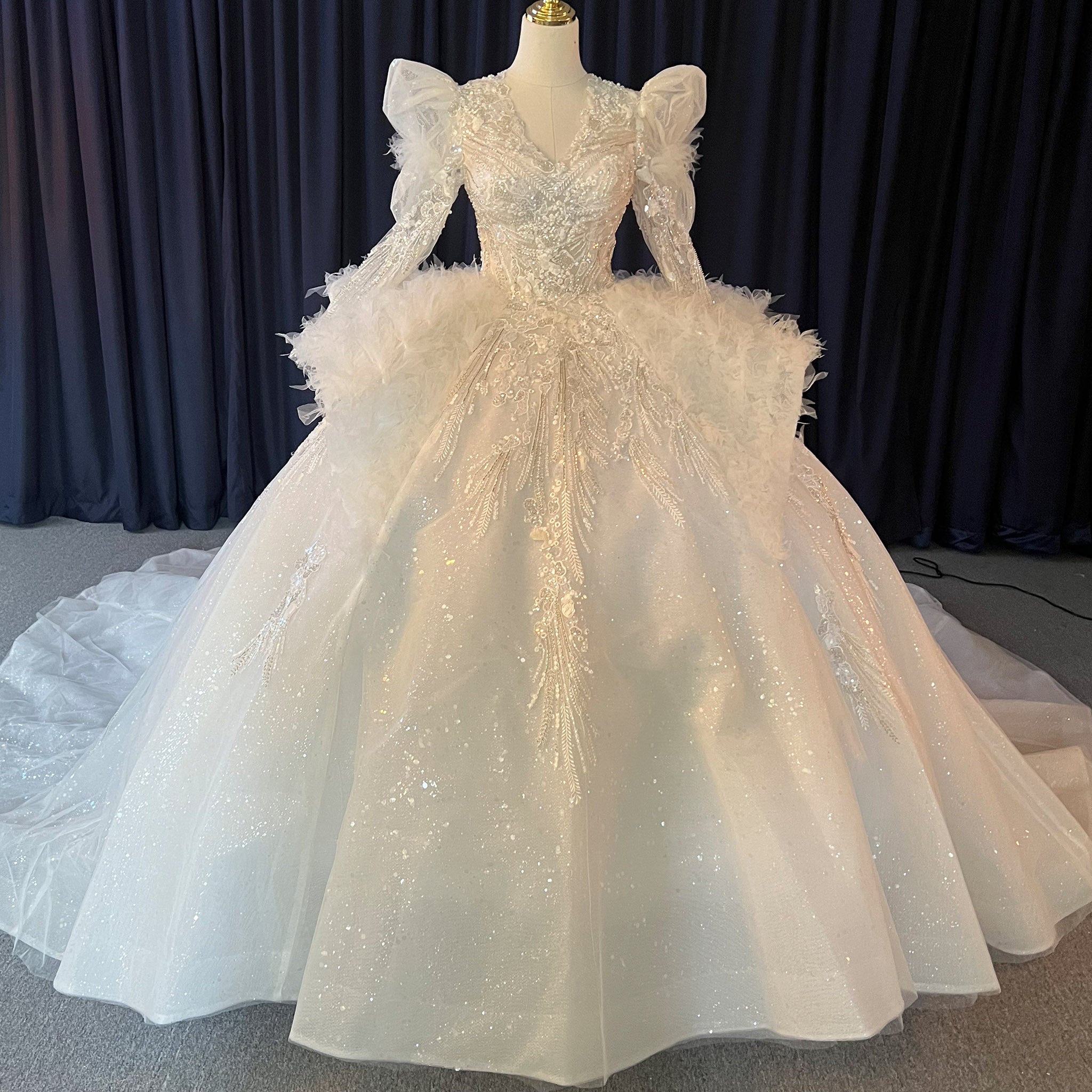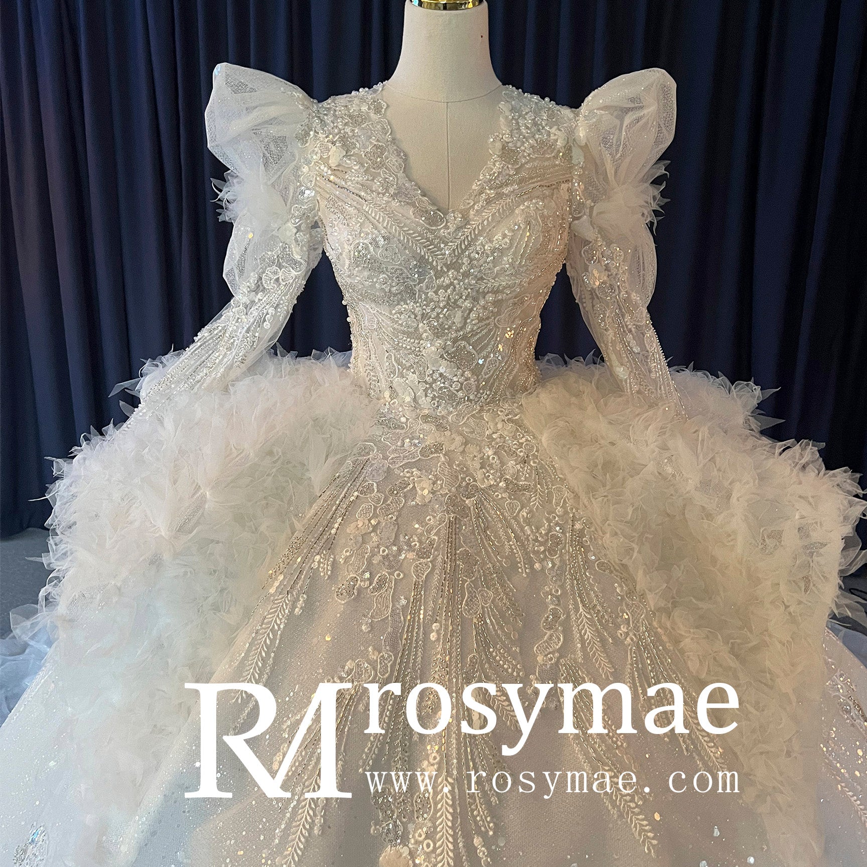 Vestido de novia real y lujoso vestido de novia con manga larga