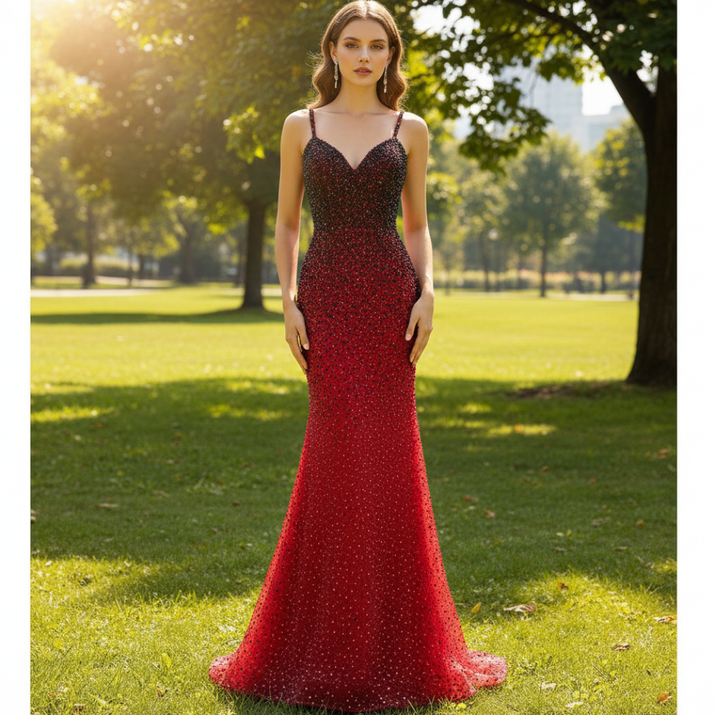 Este impresionante vestido de fiesta de sirena con cuentas te hará sentir como una verdadera reina sirena. Con sus tirantes finos y su sobrefalda extraíble, puedes personalizar tu look y deslumbrar en el escenario del desfile. Las intrincadas cuentas añaden elegancia y encanto adicionales a este vestido imprescindible.