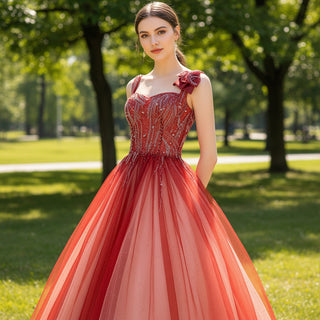 Cette robe de soirée ornée de perles scintillantes et dotée de fines bretelles est idéale pour une occasion formelle. Les paillettes brilleront de mille feux, vous assurant une allure élégante et remarquable. Les fines bretelles offrent également maintien et confort, vous permettant de danser toute la nuit en toute confiance.