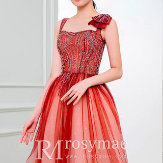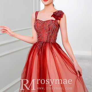 Une ligne robe de soirée rouge robe de soirée avec sangle de réservoir