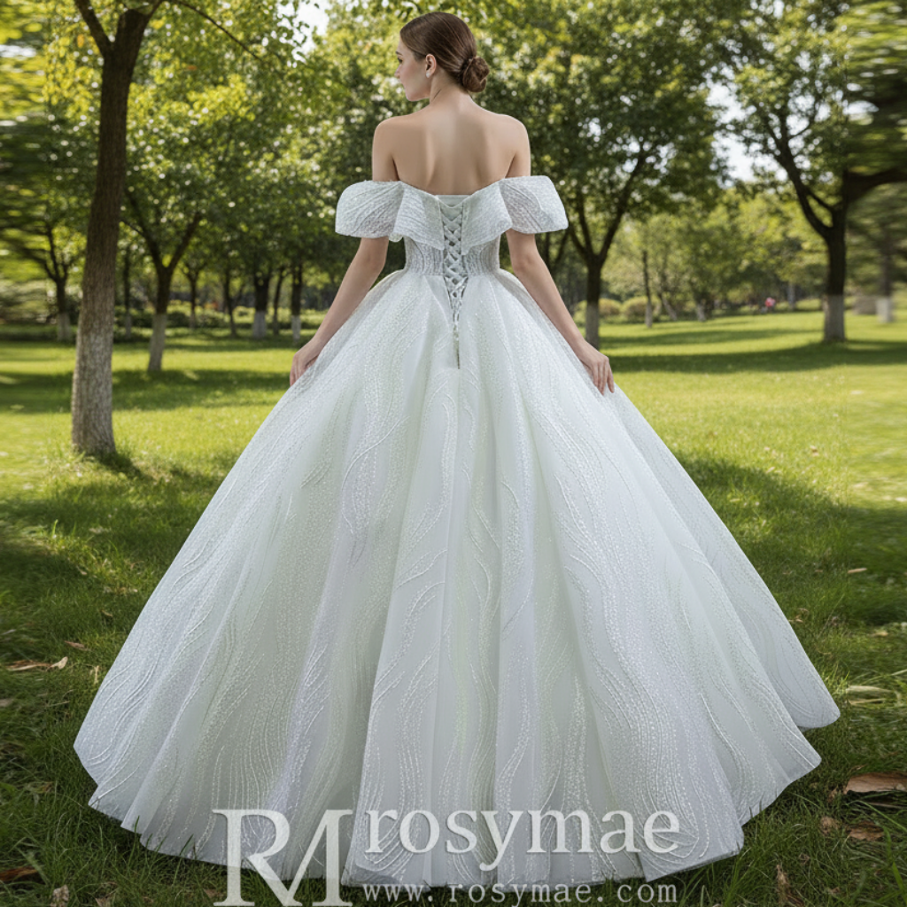 Plongez dans un univers d'élégance intemporelle avec cette exquise robe de mariée artisanale, où le charme vintage rencontre le luxe moderne. La robe présente un décolleté épaules dénudées gracieux qui souligne délicatement les clavicules, tandis que le corsage transparent, orné de subtils détails scintillants, crée une aura féérique. La jupe bouffante et volumineuse, confectionnée en plusieurs couches de tulle luxueux, s'épanouit en une silhouette de robe de bal classique qui ondule avec une grâce de conte de fées.