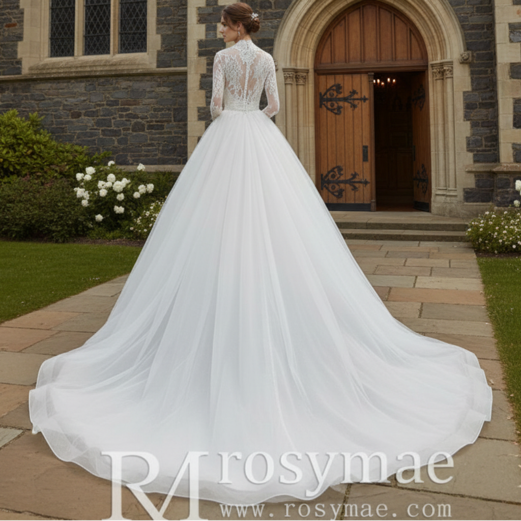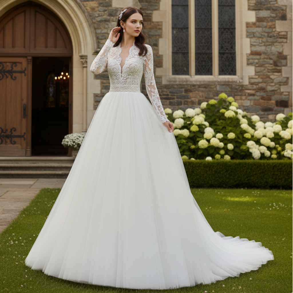 Robe de mariée à décolleté en V profond et plongeant avec manches longues