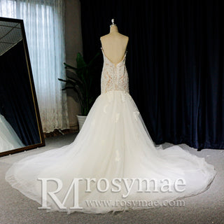 Plunging V-Neck Backless Lace Spaghetti Straps Mermaid Wedding Dress