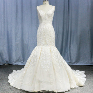 Womens V Neck Lace Appliques Wedding Dress Mermaid Bridal Gowns