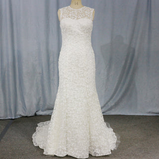 Ball Gown Lace Sheer High-Neck Bridal Wedding Dress with Long Train