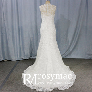 Tank-V-neck-Long-Mermaid-Illusion-Back-Wedding-Dress