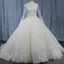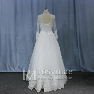 Sparkly Lace Long Sleeves Illusion Boat Neck Ball Gown Wedding Dress