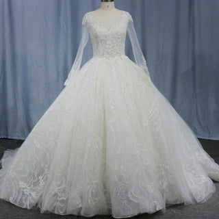 Royal and Luxurious Bridal Ball Gown Wedding Dress with Long Sleeve