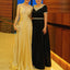 Robe de soirée sirène dorée à manches courtes, fendue sur le devant, à la mode