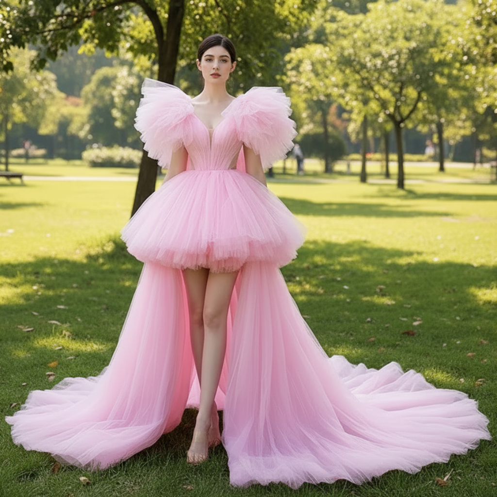 Dominez la scène et captivez tous les regards dans cette somptueuse robe de bal asymétrique à volants. Confectionnée avec soin dans des matériaux haut de gamme, sa silhouette structurée, rehaussée d'un corsage au dos et de manches bouffantes spectaculaires, lui confère une allure haute couture. Des détails raffinés et d'élégants volants créent mouvement et profondeur, tandis que l'ourlet asymétrique apporte une touche de modernité à l'élégance classique. Disponible dans une palette de couleurs allant du rose poudré au vert émeraude, et y compris en grandes tailles, cette robe garantit à chaque femme une allure rayonnante et confiante pour les bals de fin d'année, les concours de beauté, les mariages et les galas.