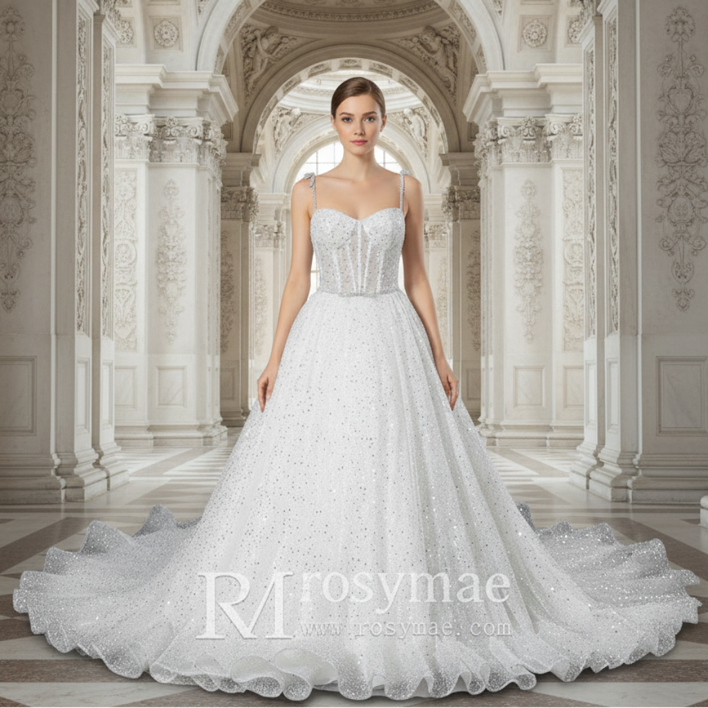 Bretelles spaghetti de luxe scintillantes Robes de bal Robes de mariée