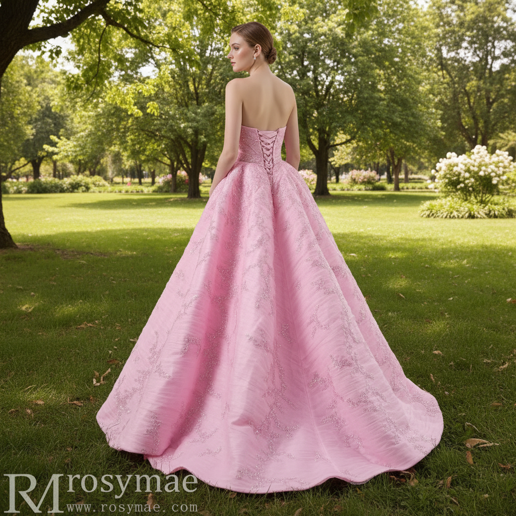 Robe de soirée rose trapèze à encolure bateau et dos corset plongeant, ornée de détails artisanaux. Cette robe sophistiquée allie une silhouette classique à une élégance contemporaine, offrant une coupe flatteuse qui met en valeur vos courbes naturelles. Les délicates broderies réalisées à la main ajoutent une touche d'éclat raffiné sans surcharger la robe, tandis que le dos corset structuré assure confort et maintien tout au long de la soirée. Parfaite pour les bals de fin d'année, les galas et les réceptions formelles où style intemporel et raffinement moderne se rencontrent. La coupe trapèze offre une fluidité de mouvement et une polyvalence idéale pour toutes les occasions formelles.