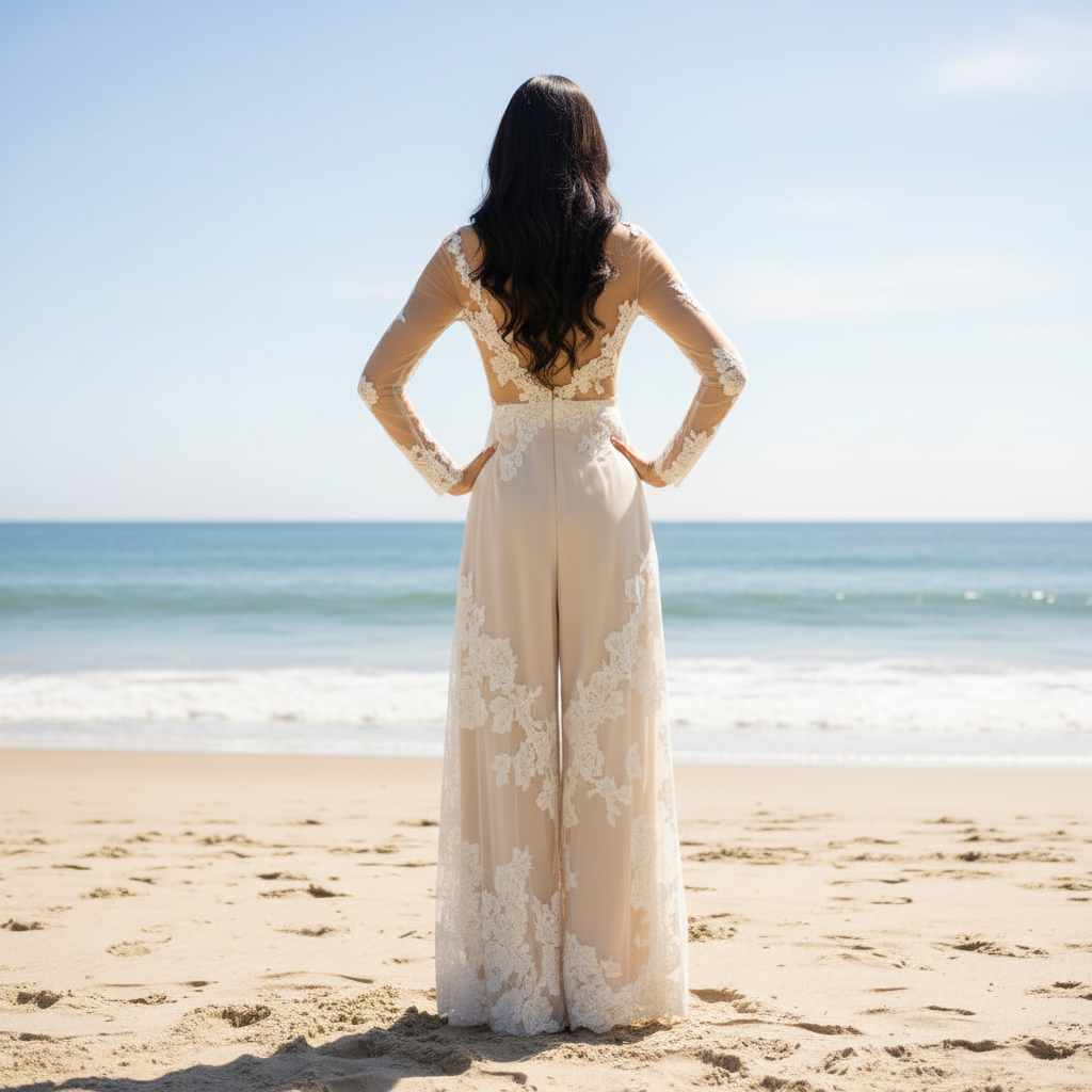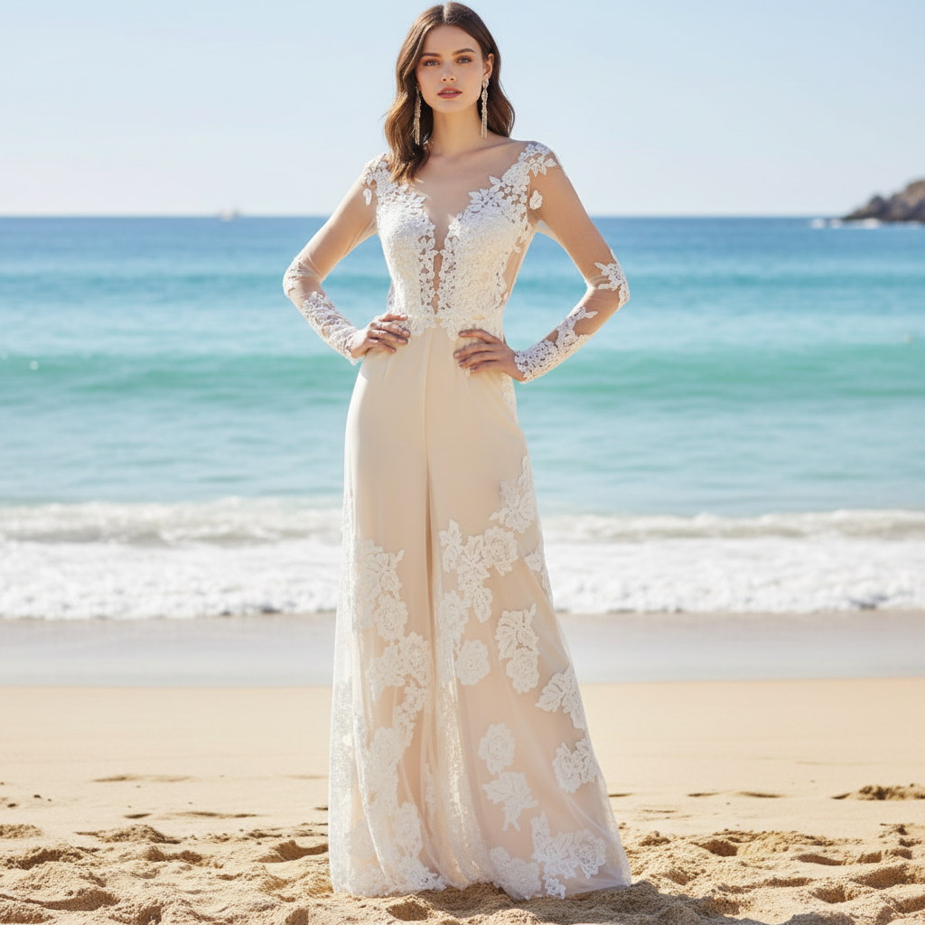 Sheer Long Sleeves Jumpsuit Robes de mariée Robes de mariée