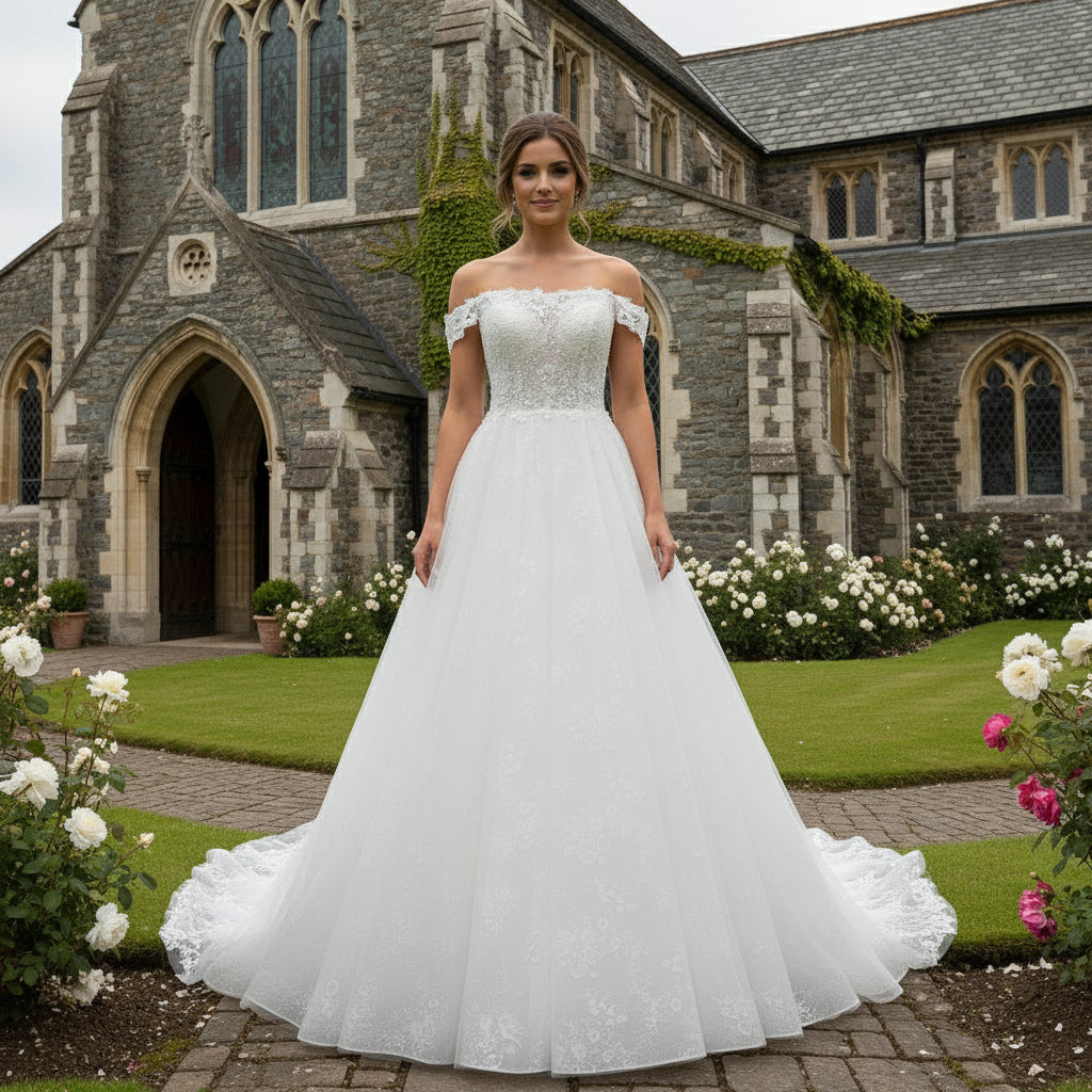 Faites une entrée remarquée dans cette robe de mariée trapèze à épaules dénudées, conçue pour sublimer votre élégance naturelle et créer des souvenirs inoubliables. Son corsage délicatement perlé est magnifiquement décoré d'appliqués floraux 3D, offrant une touche de texture romantique qui sublimera votre style. Son dos transparent illusion, doté d'une fermeture éclair discrète, offre une silhouette élégante et sophistiquée avec une aisance moderne. La jupe s'illumine d'une superposition de tulle scintillant qui capte la lumière à chaque pas, tandis que la doublure en dentelle douce apporte profondeur et douceur à la robe. S'enroulant naturellement en une traîne longue comme une chapelle, cette robe offre l'équilibre parfait entre grâce et élégance. Légère et respirante, elle est particulièrement adaptée aux mariages en plein air ou sur la plage, garantissant un confort optimal tout au long de la journée sans compromettre le style. Célébrez votre grand jour enveloppée d'une beauté intemporelle et d'un charme naturel avec cette robe captivante.