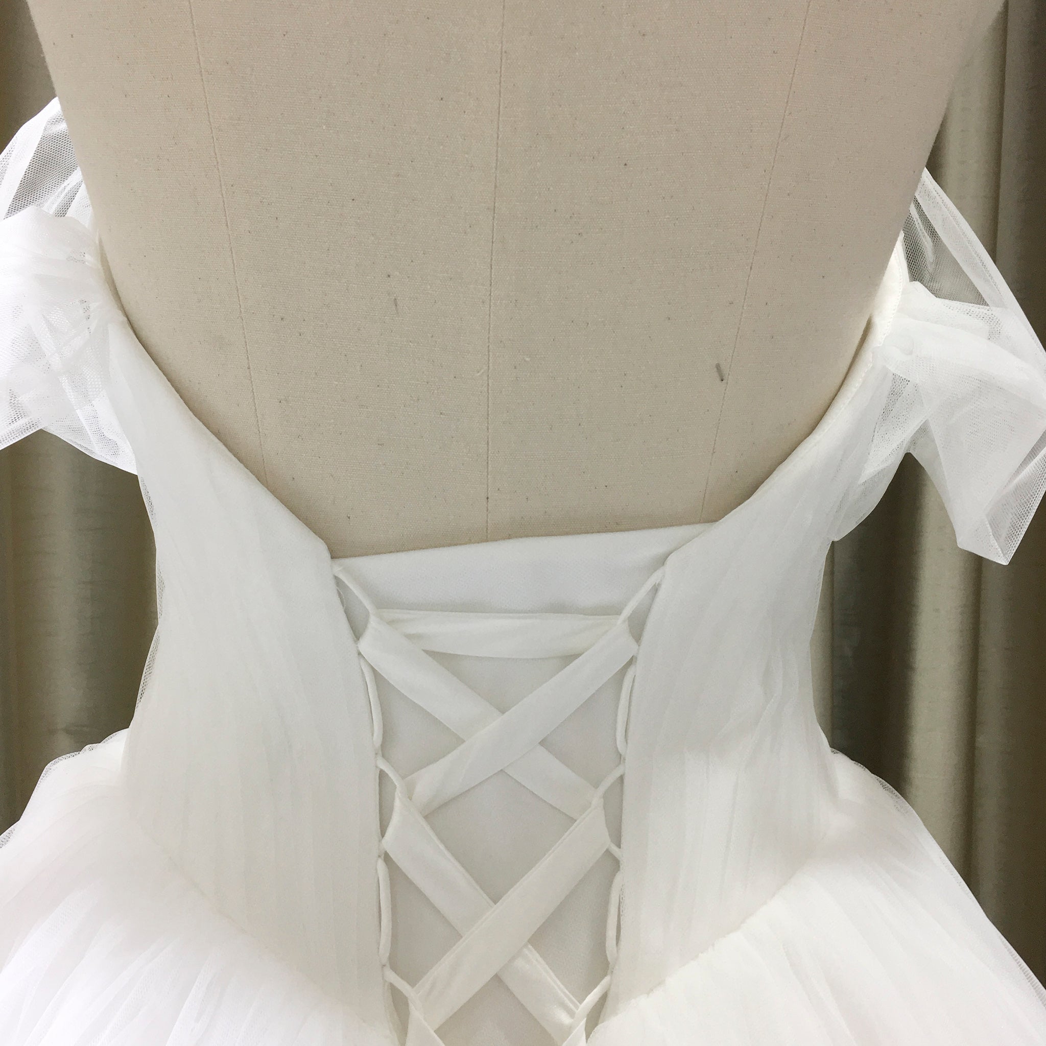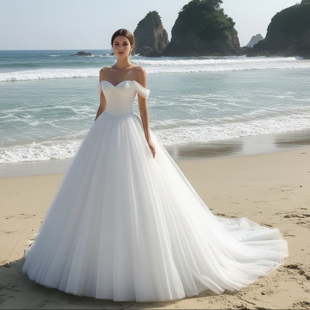 Cette élégante robe de mariée en tulle multicouches capture un romantisme intemporel grâce à son décolleté épaules dénudées classique et son dos nu délicat. Confectionnée avec plusieurs couches de tulle doux et fluide, elle crée une silhouette vaporeuse et aérienne qui épouse gracieusement chaque pas, conférant une allure légère et une beauté naturelle. Le dos nu, minutieusement travaillé, ajoute une touche de sensualité subtile tout en préservant la sophistication raffinée de la robe, mêlant harmonieusement style contemporain et élégance intemporelle. Conçue pour les mariées qui apprécient le charme discret, cette robe offre une coupe flatteuse qui met en valeur votre grâce naturelle et votre féminité. Le décolleté épaules dénudées encadre magnifiquement les épaules et les clavicules, accentuant le romantisme de la robe. Que vous remontiez l'allée jusqu'à l'autel ou que vous célébriez avec vos proches jusqu'au bout de la nuit, ses détails romantiques et son savoir-faire classique vous promettent de vous sentir radieuse, confiante et inoubliable le jour de votre mariage. Sa conception polyvalente s'accorde également facilement avec une variété d'accessoires, vous permettant de personnaliser votre look de mariée et de refléter votre style unique.