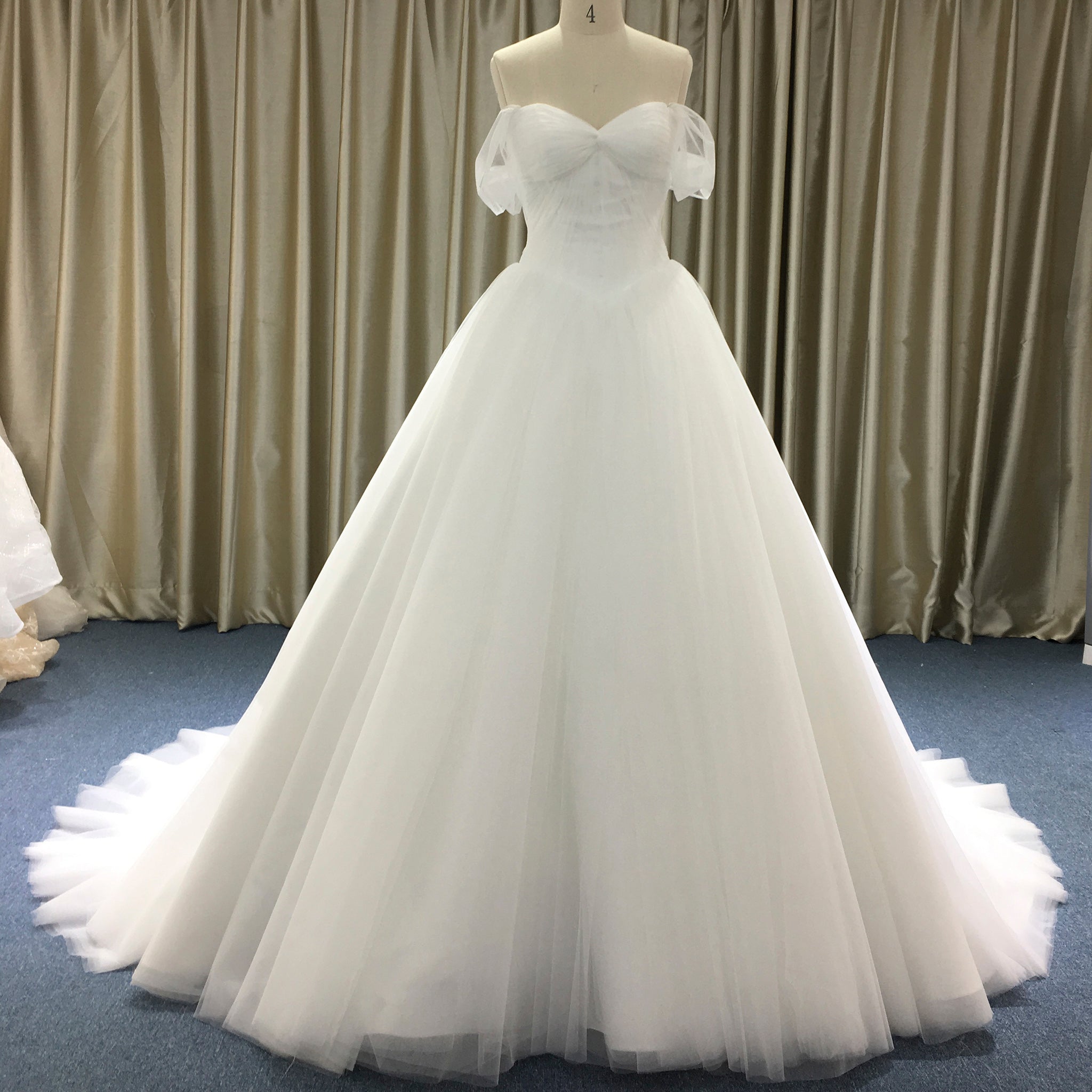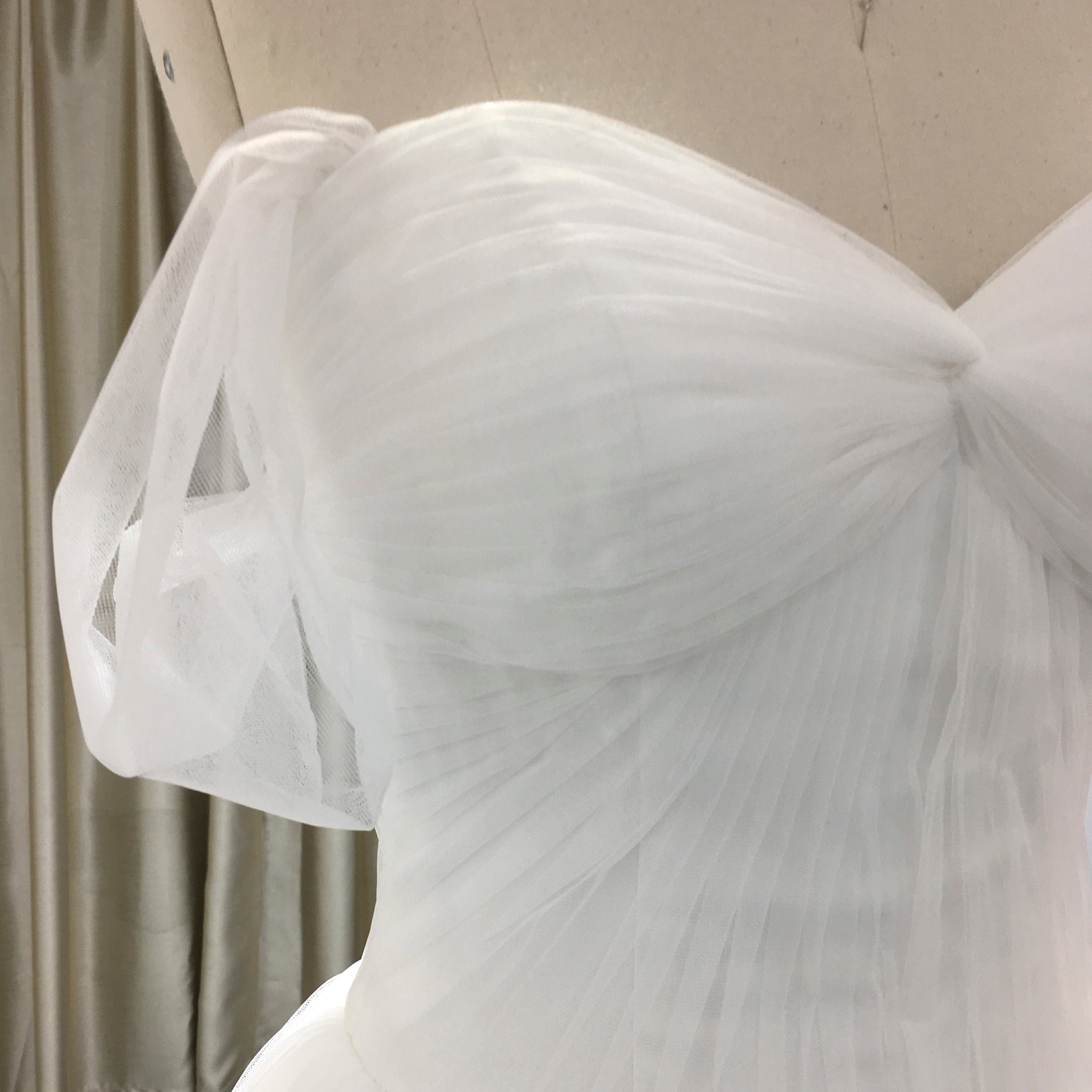 Robe de mariée simple en tulle multicouche avec dos nu et épaules dénudées