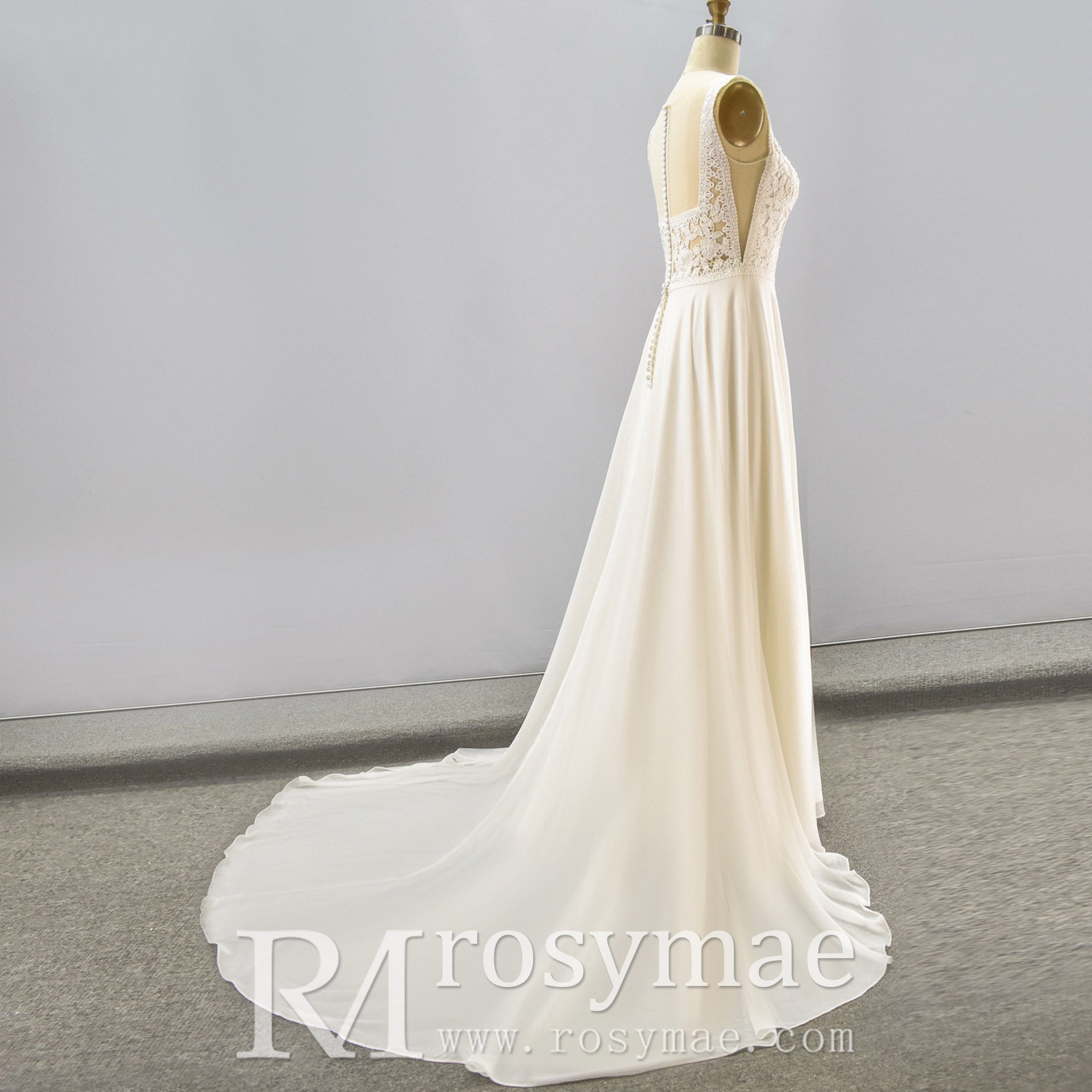 Robe de mariée fourreau classique en forme de A avec décolleté rond. Cette robe de mariée sophistiquée allie une élégance intemporelle à une modernité raffinée. Le décolleté rond illusion est orné de délicates dentelles qui soulignent les épaules avec grâce tout en préservant une silhouette gracieuse et discrète. Le corsage est recouvert d'une dentelle raffinée qui se fond harmonieusement dans une jupe fourreau fluide en mousseline et satin doux, créant une ligne flatteuse qui allonge la silhouette. Conçue pour la mariée contemporaine, cette robe présente des empiècements transparents sur les côtés et dans le dos, ajoutant une touche de romantisme et d'originalité. La construction fourreau structurée offre maintien et définition aux hanches avant de s'évaser en une élégante jupe en A. Une fermeture éclair invisible assure une vue dégagée dans le dos, tandis que la traîne chapelle ajoute une présence spectaculaire sans alourdir la silhouette. Parfaite pour les cérémonies formelles et les réceptions chics, cette robe allie tradition nuptiale classique et sensibilité contemporaine. L'association de dentelle, de mousseline et de satin crée une texture et un mouvement luxueux, vous assurant confiance et éclat pour votre jour J.