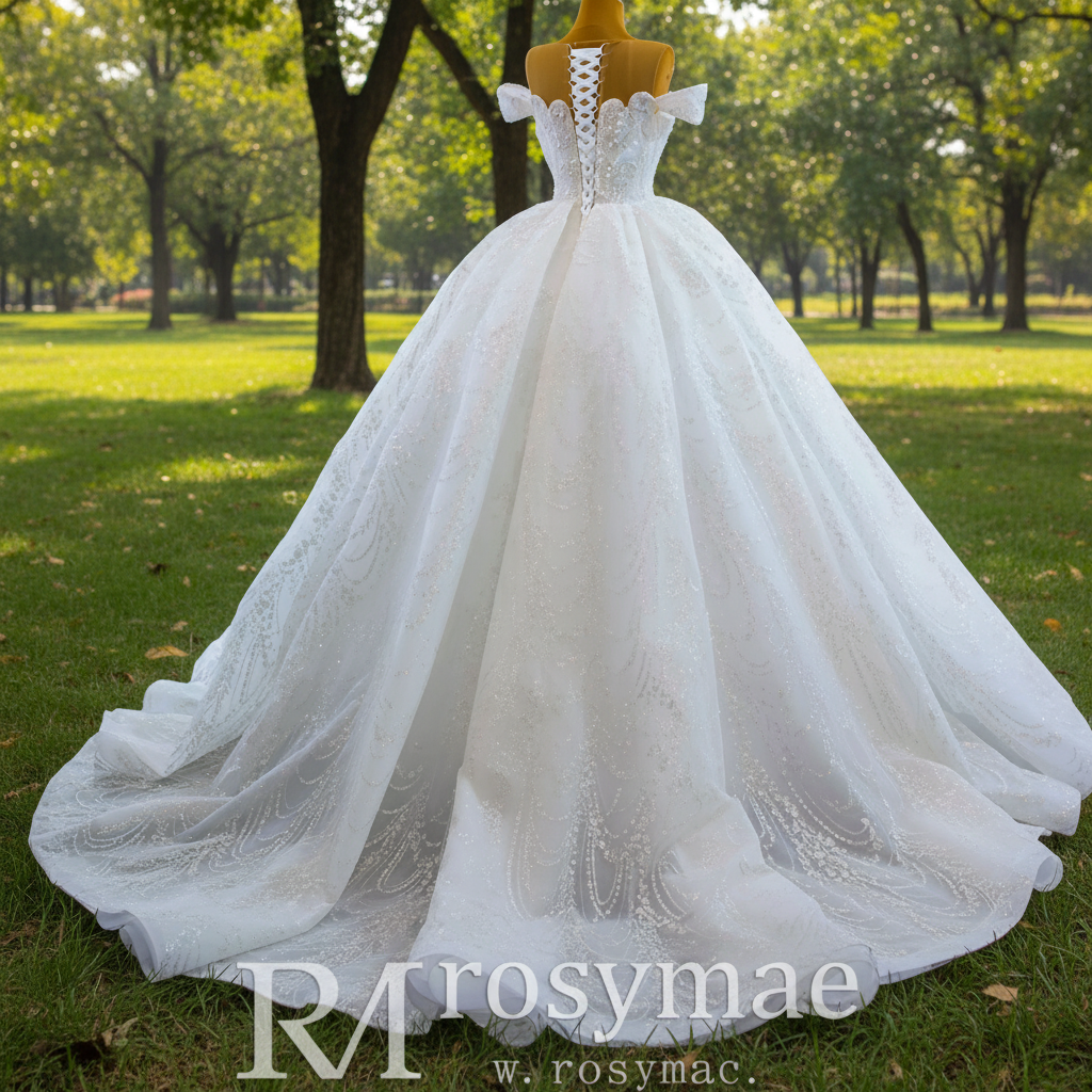 La jupe volumineuse de cette robe de bal, confectionnée en tulle de qualité supérieure, dessine une silhouette féérique qui se prolonge en une traîne discrète. Le dos corset, orné de rubans de satin et de délicats boutons, assure un ajustement sur mesure qui sublime vos courbes naturelles tout en vous offrant un confort exceptionnel. Parfaite pour les mariées en quête d'une allure à la fois intemporelle et romantique, cette robe allie l'élégance d'inspiration vintage au savoir-faire contemporain pour faire de votre mariage un moment inoubliable.