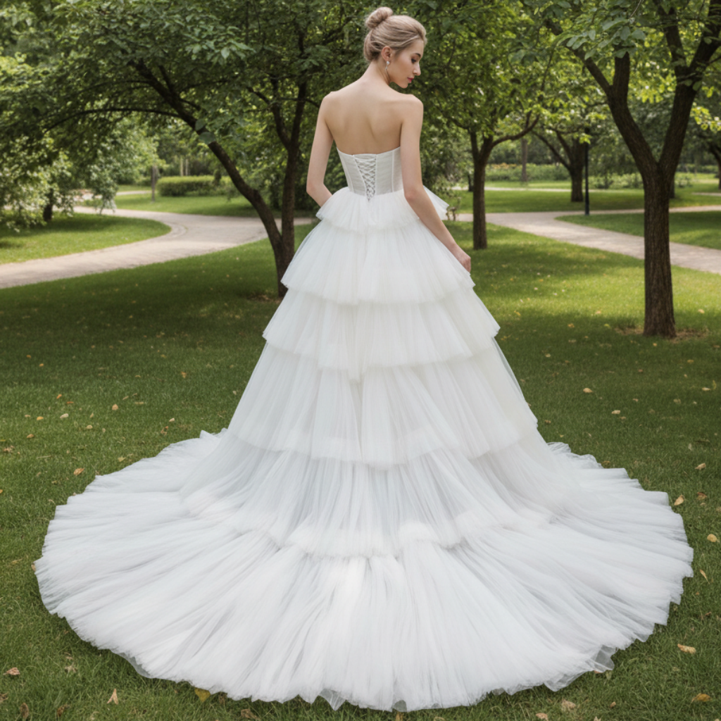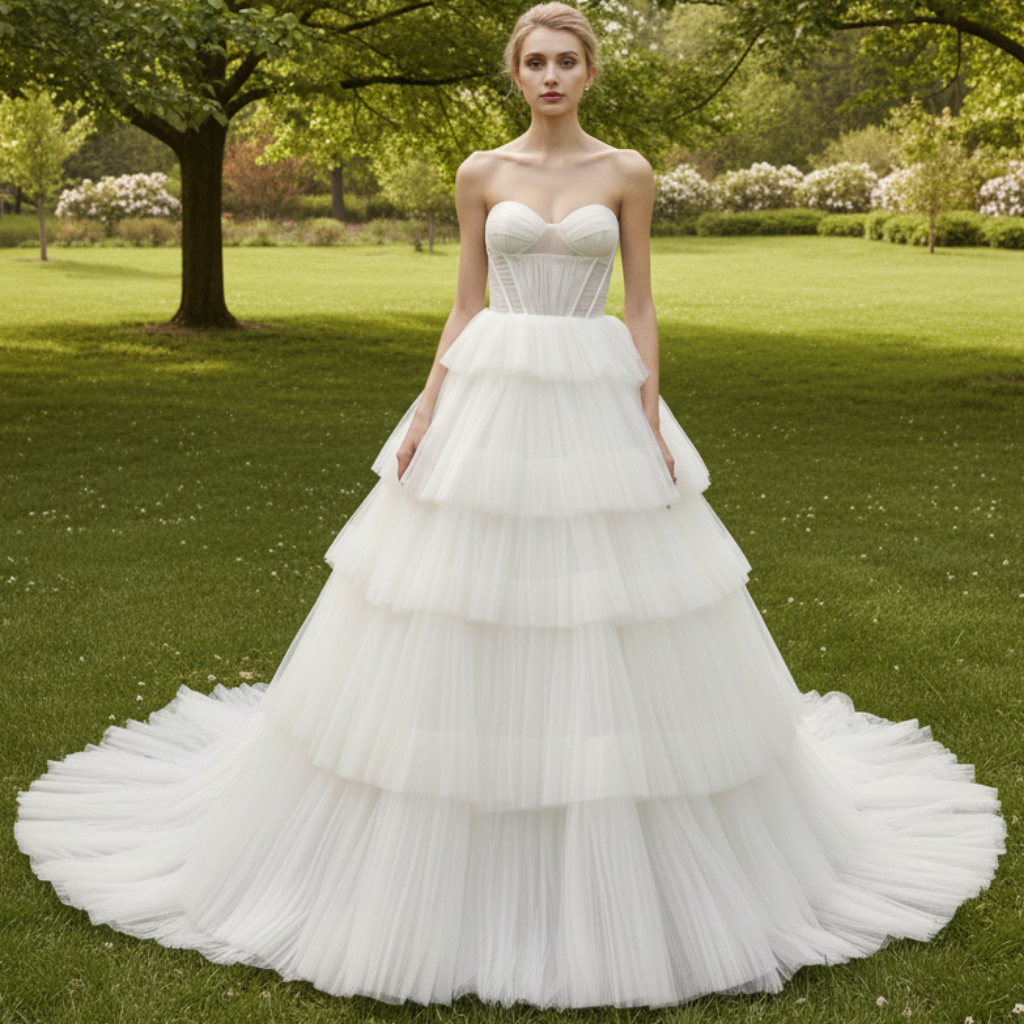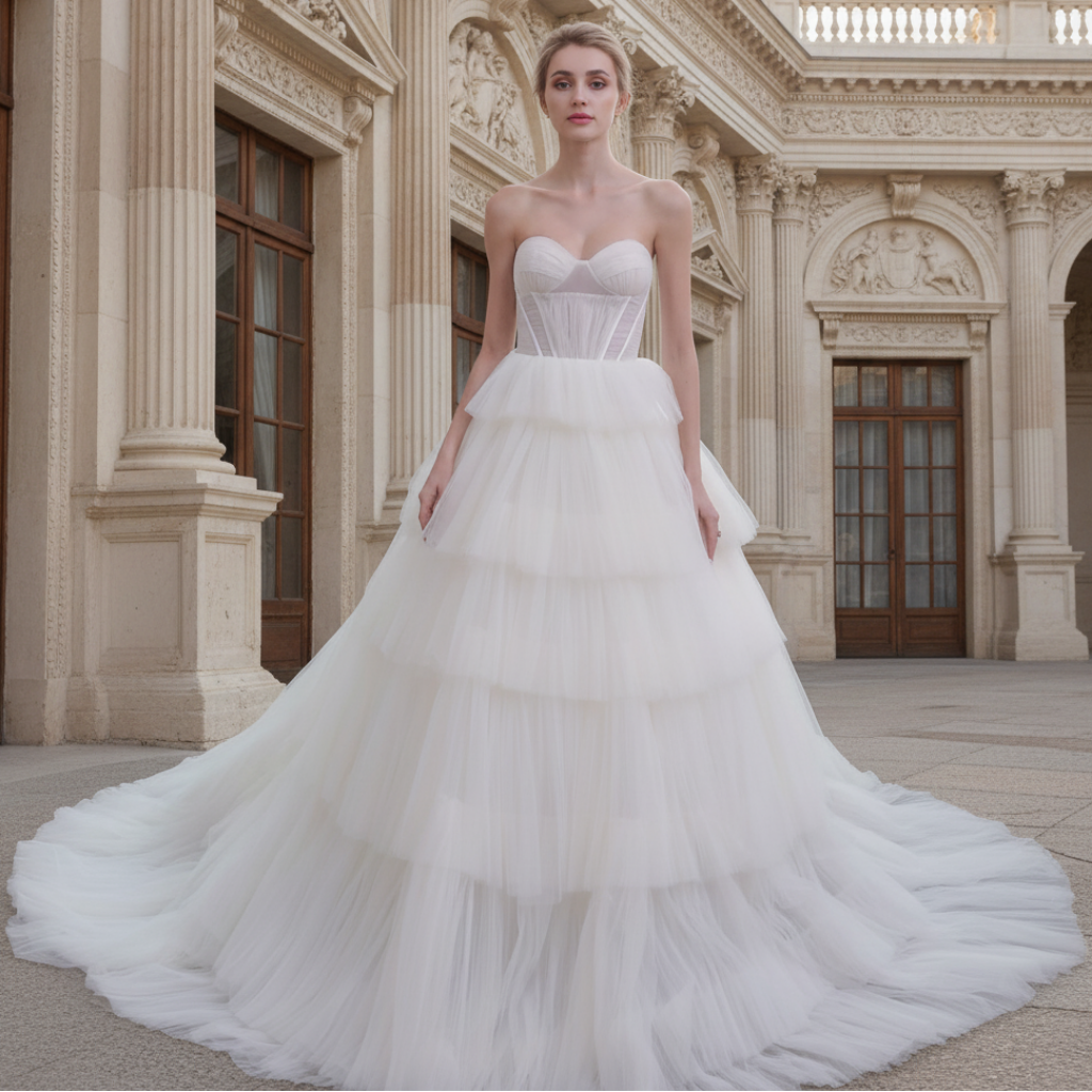 Bustier chérie robe de bal en tulle superposé jupe robe de mariée